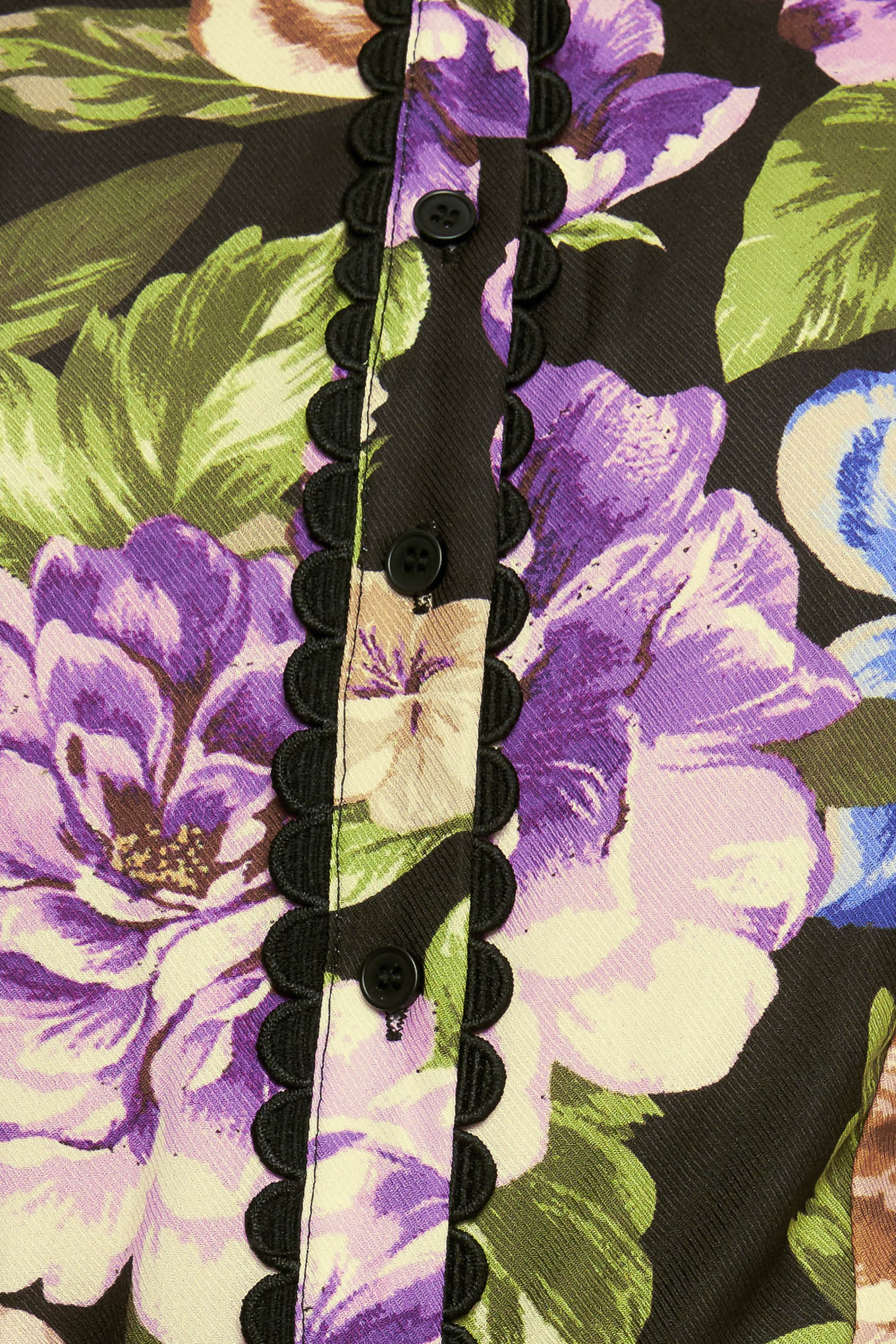 The Ashvale Midi Dress captures soft structure with a darkly romantic edge. Crafted in a printed woven fabric, it features a collared neckline, short puff sleeves with cuffs, and a button-down front. A self sash tie cinches the waist for definition, while the midi length makes it a timeless piece you can wear layered or on its own.