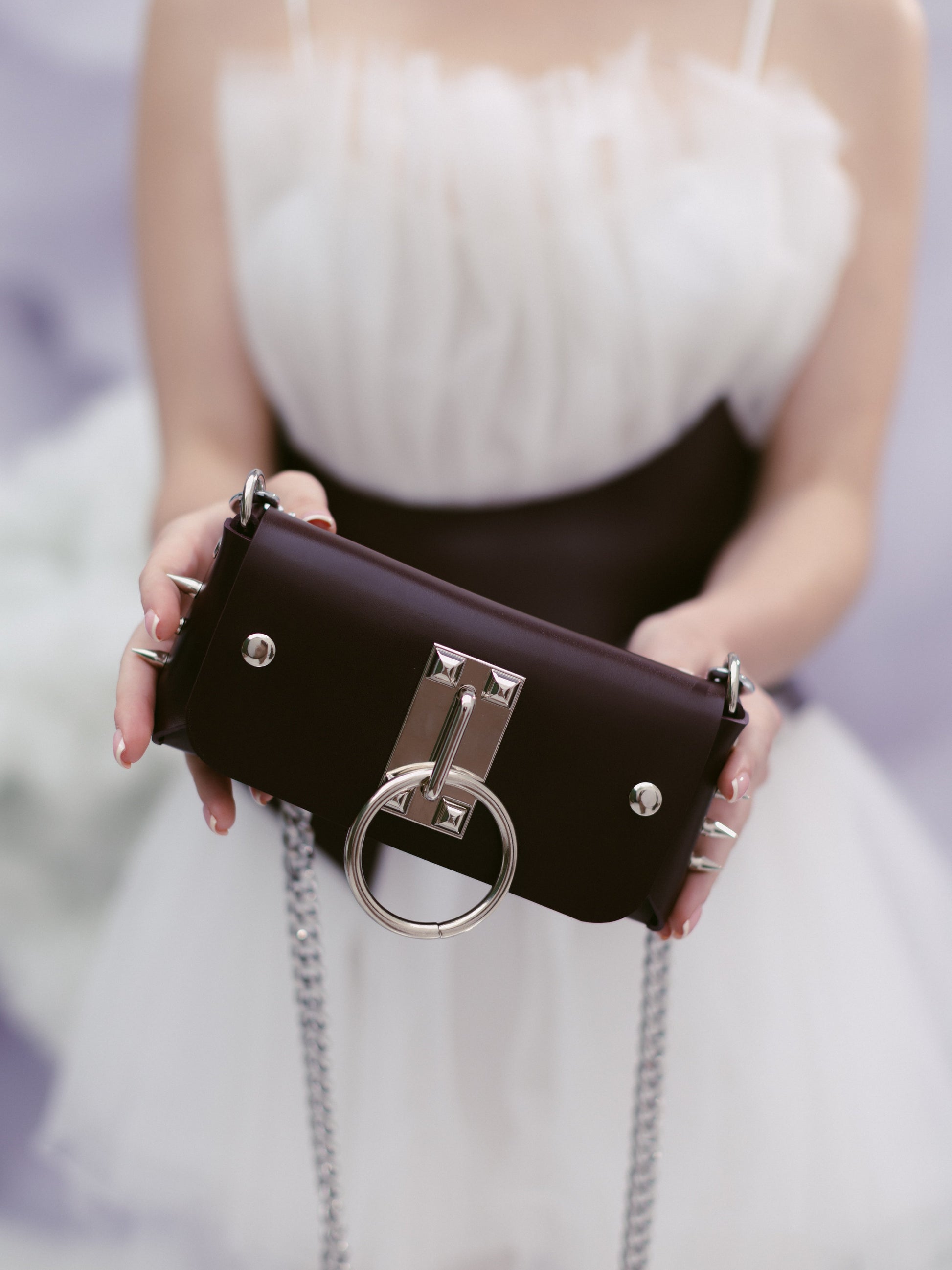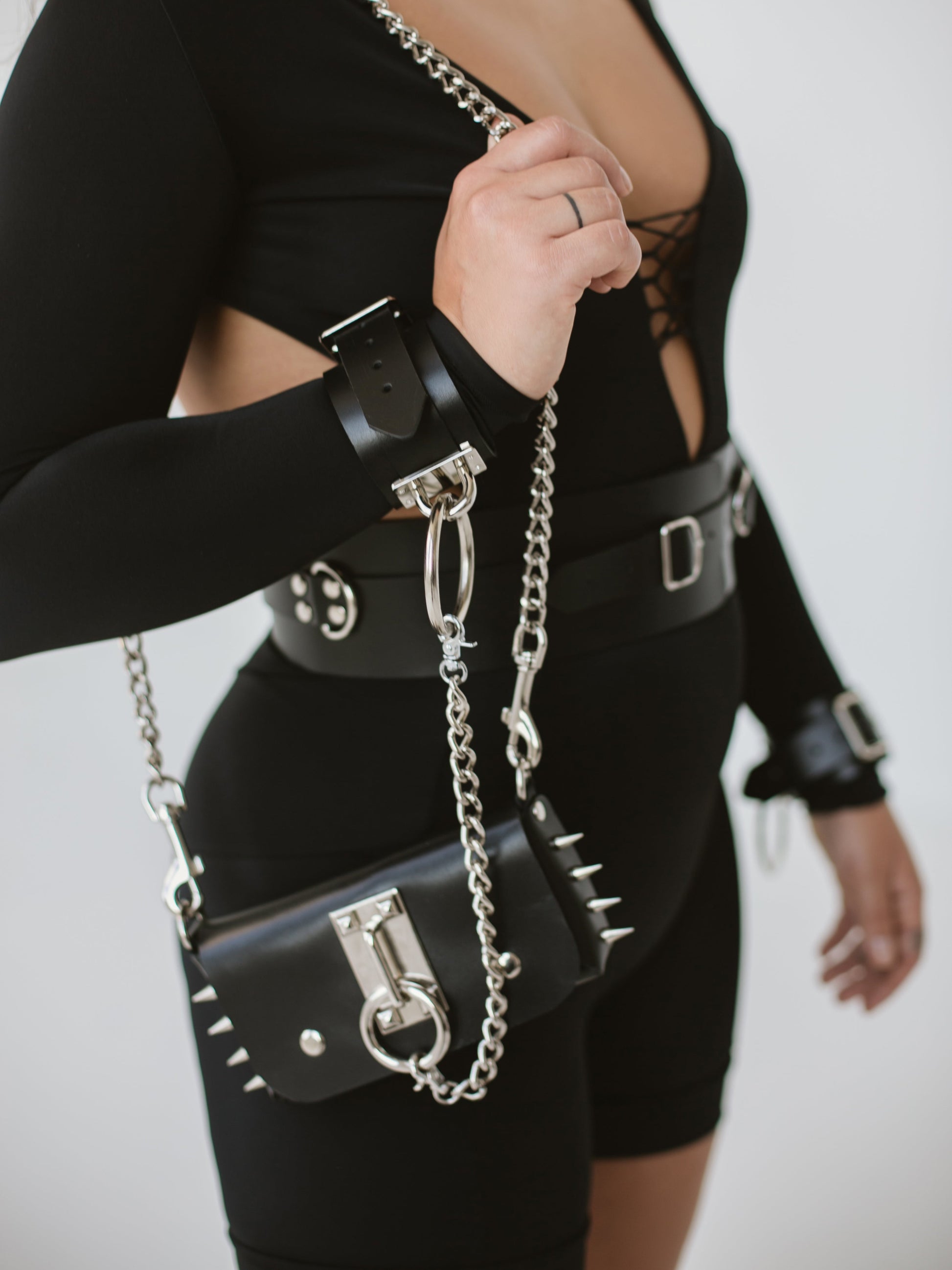 Channel your inner gothic charm with our Origami Bag, designed to stylishly accommodate all your essentials (phone, lipsticks, and more). This captivating accessory features a hidden magnetic snap closure. With both chain and leather shoulder straps included, effortlessly switch up your look wherever you go.