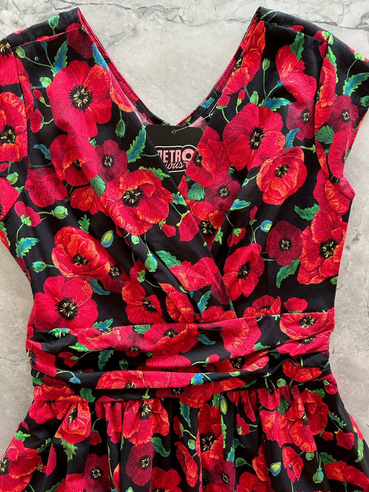 The Greta is everything you could want and more! Shown in our Poppy Flower print, this vintage style cotton dress features a gathered surplice neckline, cummerbund waist with figure flattering gathers, a vintage inspired twirl-worthy skirt with hidden side pockets, and a back zippered closure.